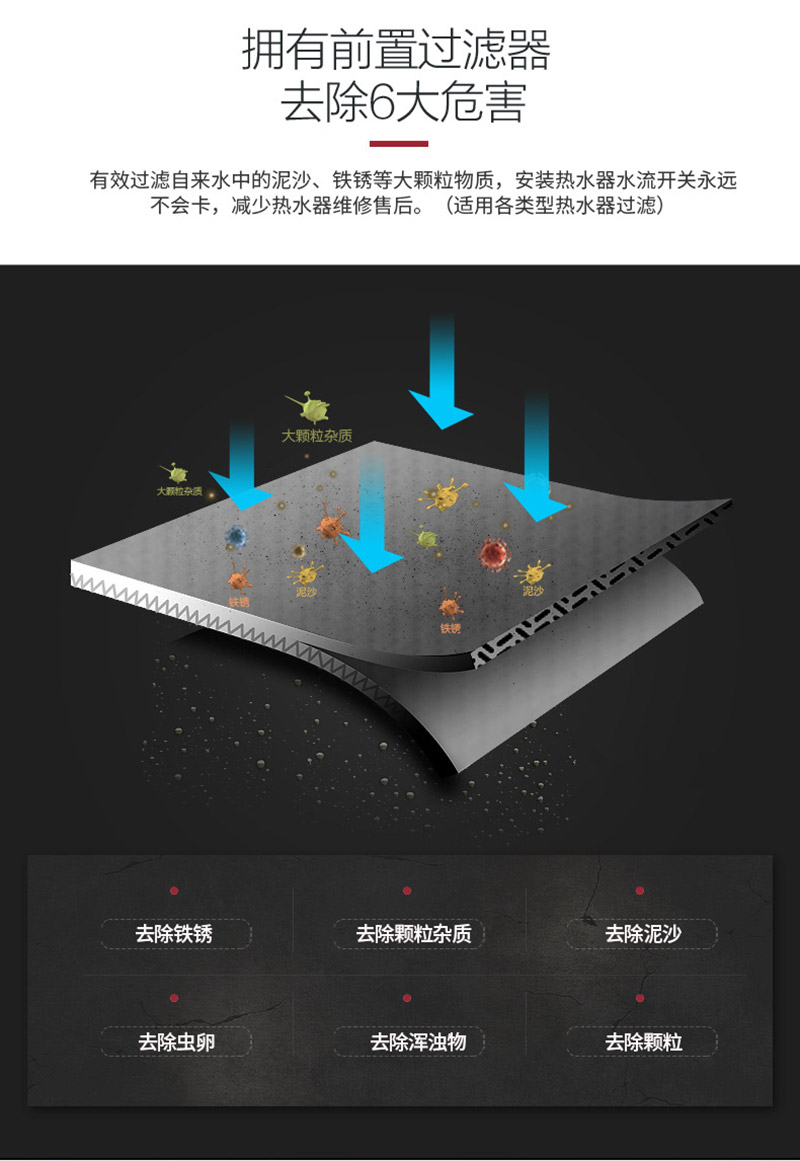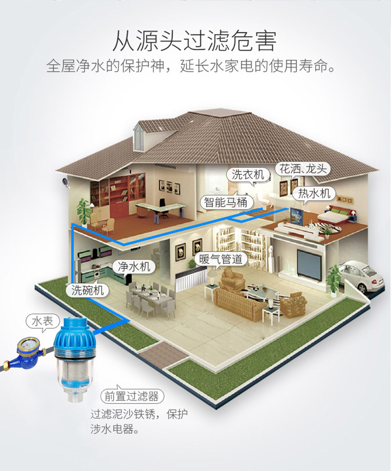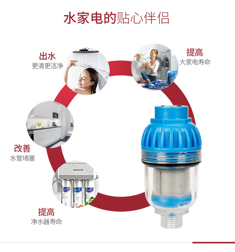 有效過濾自來水中的泥沙、鐵銹等大顆粒物質(zhì),(過濾精度,相當(dāng)于頭發(fā)絲的1/50),